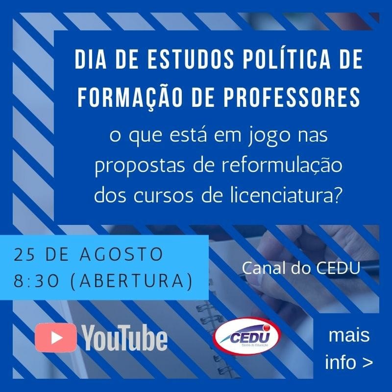 Conforme deliberado na plenária de 4 de agosto, o CEDU realizará no dia 25 de Agosto (quarta-feira), nos horários da manhã e da tarde, um dia de discussão sobre a atual política de formação de professores.
